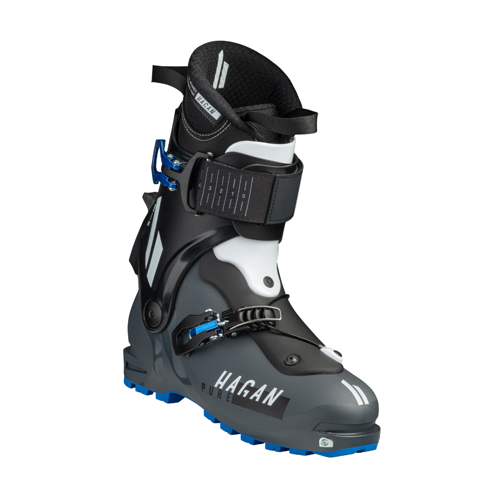 Lyžiarky HAGAN PURE spĺňajú všetky vaše požiadavky na lyžiarsku topánku. Dve ľahko použiteľné pracky robia topánku veľmi intuitívnou a ovládateľnou, 60° rotácia manžety sľubuje prirodzený a pohodlný pohyb pri chôdzi, perfektná poloha z kopca vďaka predklonu o 16°, stredný ohyb medzi 90 a 100 poskytuje vynikajúcu priľnavosť pri jazde z kopca. Pre ešte lepšie prispôsobenie je možné zóny vnútornej topánky tepelným tvarovaním prispôsobiť fibule, holeni, členku a priehlavku. Je vhodný pre špendlíkové väzby a Marker KingPins.